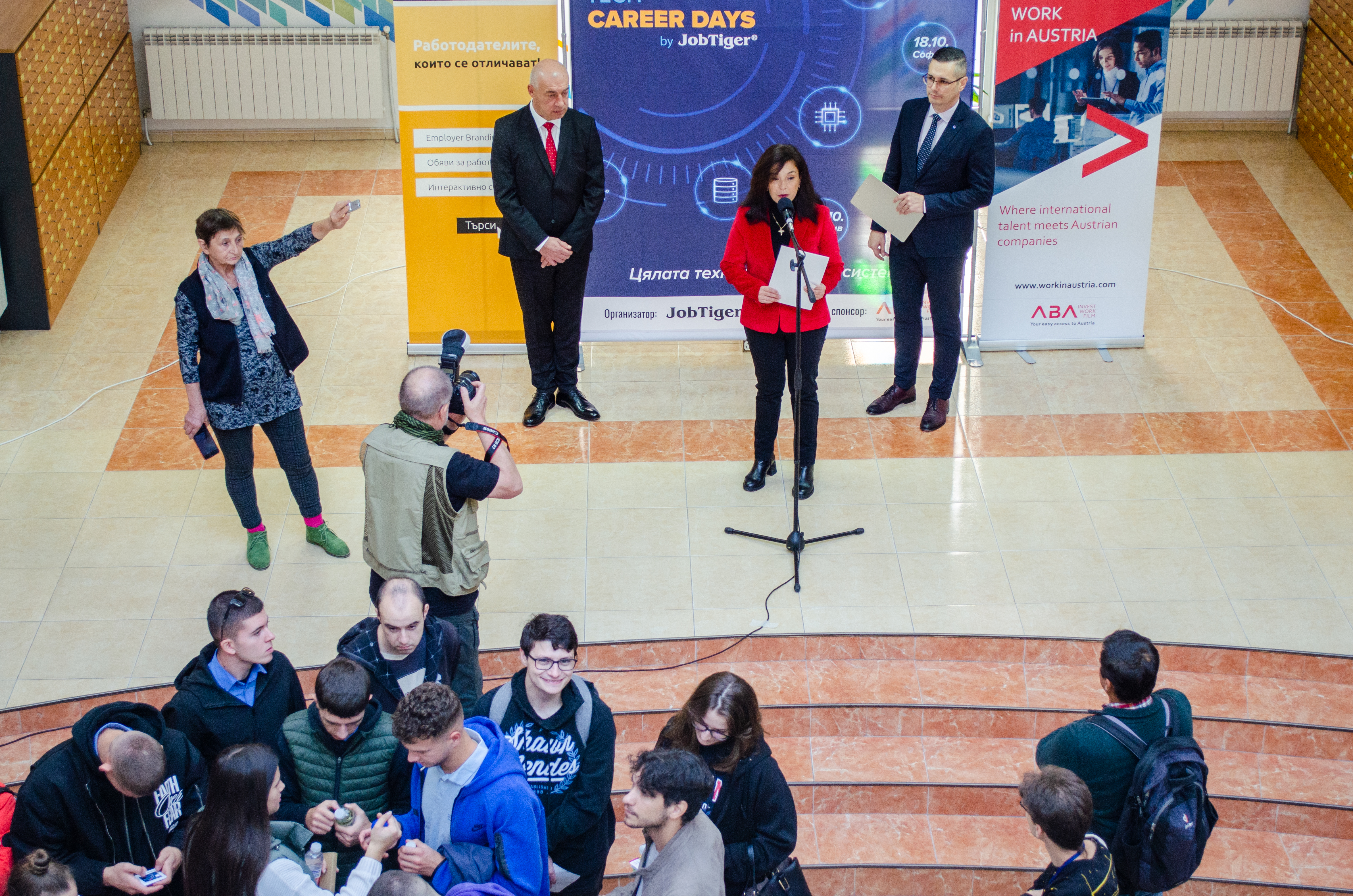 Приветствия към участниците направиха д-р инж. Десислава Колева, директор на дирекция „Устойчиво развитие“ на община Габрово и член на Съвета на настоятелите на Технически университет Габрово, която връчи поздравителен адрес от името на г-жа Таня Христова, кмет на Община Габрово. Г-н Светлозар Петров, управител на JobTiger, също отправи приветствие към всички присъстващи, изтъквайки важността на сътрудничеството между бизнеса и образованието в развитието на младите таланти.