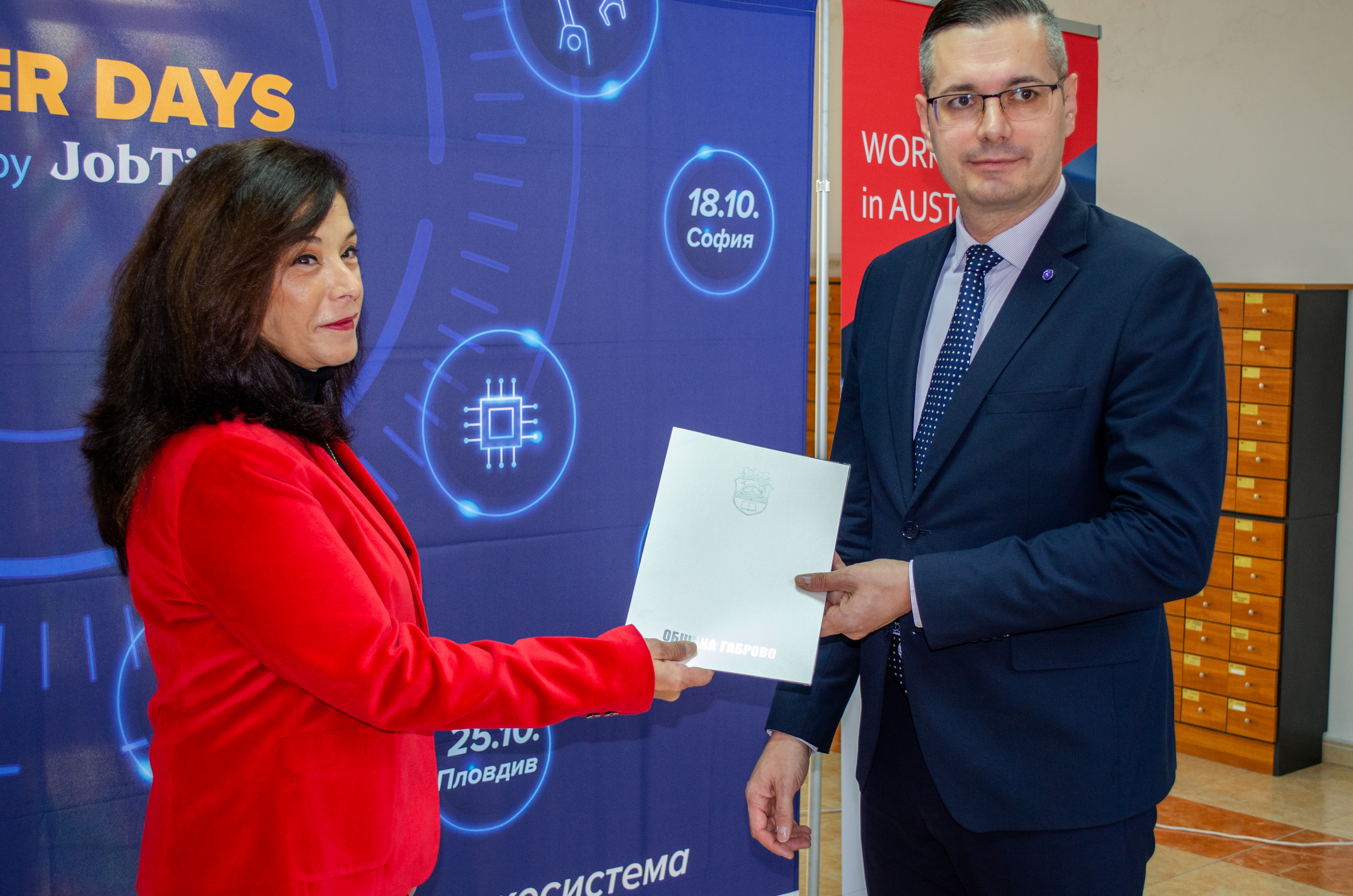 Приветствия към участниците направиха д-р инж. Десислава Колева, директор на дирекция „Устойчиво развитие“ на община Габрово и член на Съвета на настоятелите на Технически университет Габрово, която връчи поздравителен адрес от името на г-жа Таня Христова, кмет на Община Габрово. Г-н Светлозар Петров, управител на JobTiger, също отправи приветствие към всички присъстващи, изтъквайки важността на сътрудничеството между бизнеса и образованието в развитието на младите таланти.